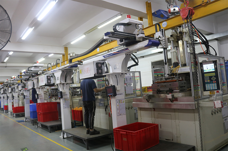 我司結(jié)合實(shí)際需求于開始著手聯(lián)絡(luò)自動化模具商和全自動化供應(yīng)商研發(fā)多臺全自動化注塑機(jī)聯(lián)機(jī),實(shí)現(xiàn)注塑機(jī)上的自動化成型。