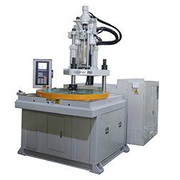 四站圓盤立式注塑機可以用在金屬放取件包膠成型較長產(chǎn)品,增加四個工位工作,與兩站圓盤立式注塑機同等周期。